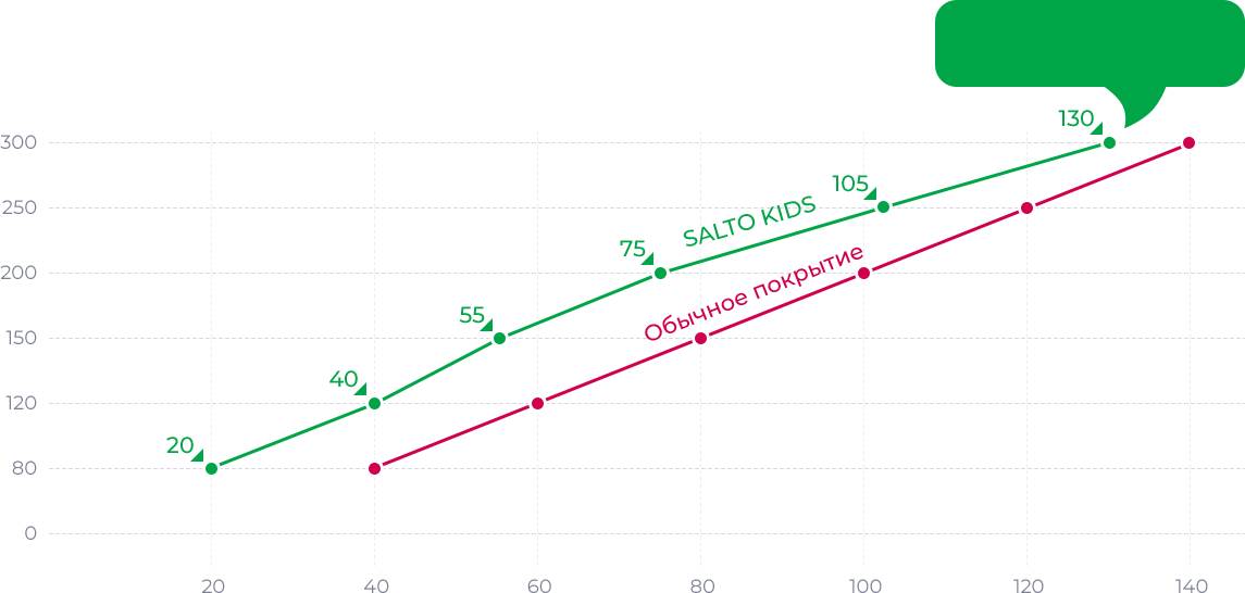 Используя полиуретановое связующее компании Huntsman, признанного лидера во всём мире по производству полимеров, покрытия Сальто не твердеют и не трескаются через 2-3 месяца, как при использовании дешёвых аналогов, а остаются мягкими и эластичными на всём сроке эксплуатации.